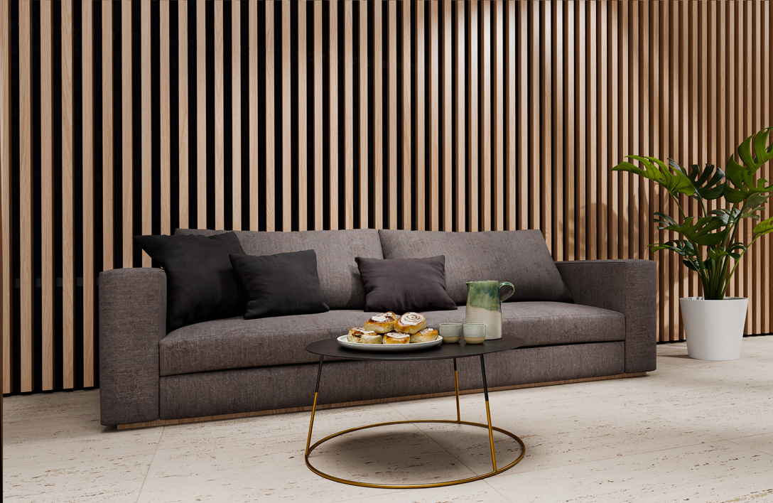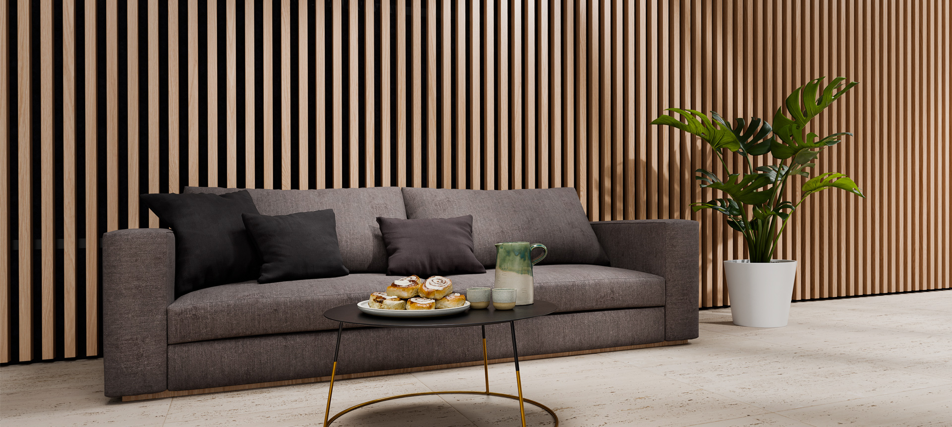Wibergs Deco är ett flexibelt ribbsystem där designen inte behöver anpassa sig efter systemet, utan tvärtom. Välj bland hundratals standardprofiler eller beställ specialhyvlade ribbor efter egna ritningar. Du styr träslag, dimensioner, proportioner och mönsterbild och den dolda infästningen ser till att helheten blir ren och sammanhållen. Och vill du kombinera uttrycket med bättre ljudmiljö funkar det lika bra med akustiklösningar bakom ribborna.